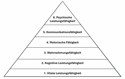 Die sechsstufige Pyramide beschreibt die Fähigkeiten (interne Ressourcen) die einer Person zur Verfügung stehen können. Diese Art der Darstellung soll verdeutlichen, dass die Fähigkeiten aufeinander aufbauen.